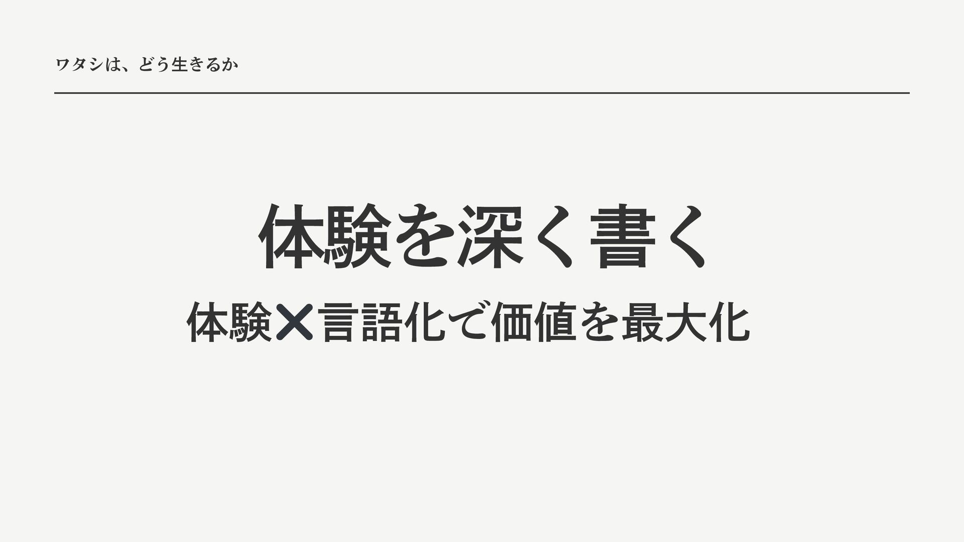 ワタシは、どう生きるか 体験を深く書く 体験 ✖️言語化で価値を最大化