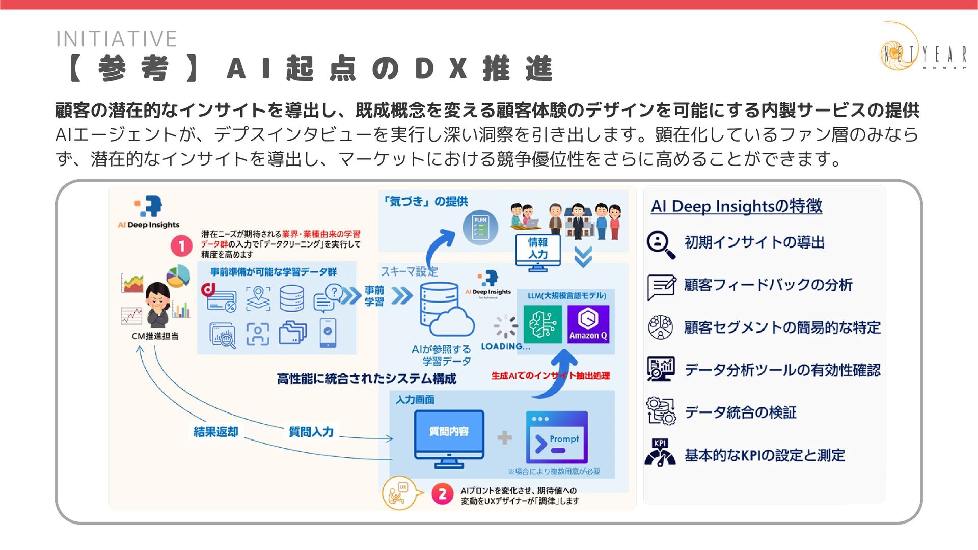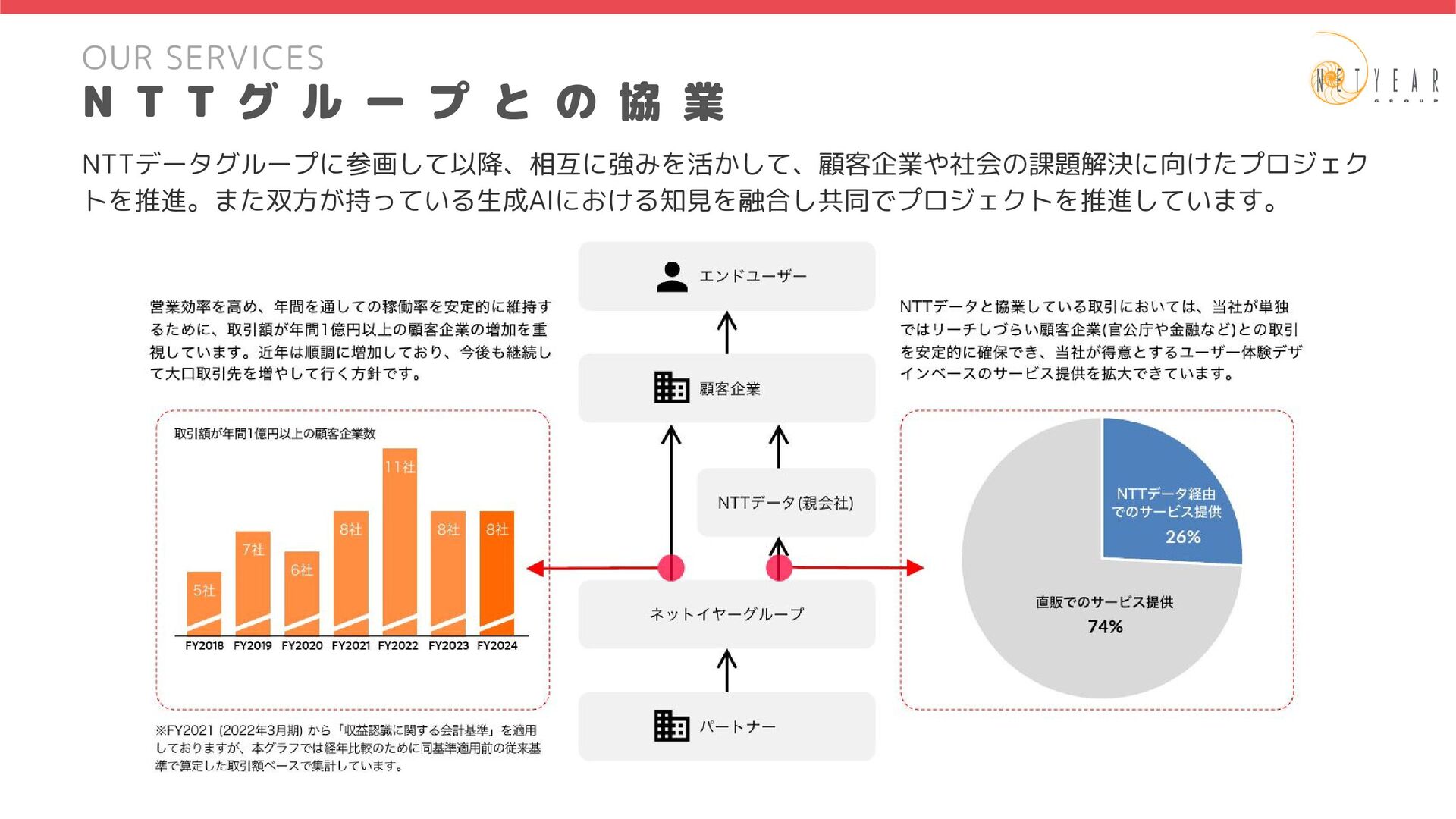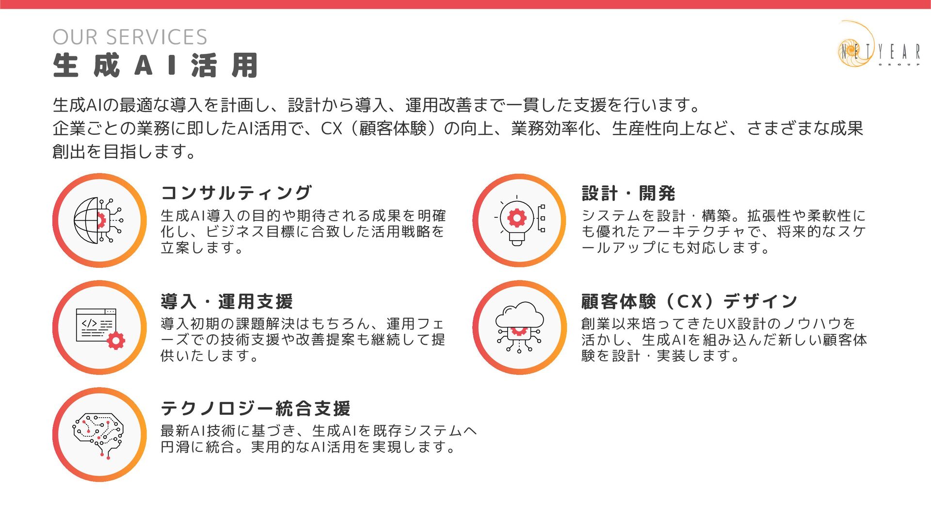 2025年4月1日時点 ロイヤリティマーケティングの実現、業務運用、 高度化(CRM/CDP/MA)を行う部署です。 マーケティングプロセスのDX化・AI化を行い、 クライアントの事業拡大支援を行う事業部です。 財務経理部 社 長 室 コーポレート本部 法務部 総務部 案件によって部門の垣根を越えて連携しながら、 スピーディーな意思決定を行います。 情報システム部 経営管理部 人 事 部 インキュベーション室 マーケティングフルファネルの全般企画、提案、 コンサル(新規営業)を行う部署です。 集客を中心としたマーケティングの実現、業務運用、 高度化(デジタル広告)を行う部署です。 顧客タッチポイントとなるEC、 サービスアプリの実現と高度化を行う部署です。 第1事業部(46名) 第 1 事 業 部 ( 4 6 名 ) プロデュース部(14名) 3チーム 第1マーケティングソリューション部(6名) 1チーム 第2マーケティングソリューション部(16名) 1チーム 第3マーケティングソリューション部(9名) 2チーム チーム伴走における新規顧客開拓の初期提案から 継続拡大提案まで一式を行う部署です。 飲食チェーンやエンタメ系ECへチームで伴走を行う部署です。 企画・デザインから開発まで一括支援を実施します。 通信会社や公共交通機関へチームで伴走を行う部署です。 企画・デザインから開発まで一括支援を実施します。 第1事業部(46名) 重要クライアントのWebサービス/サイトの開発、 運用を軸とした事業拡大支援(AI活用による開発の高度化)を行う事業部です。 第 2 事 業 部 ( 1 2 5 名 ) プロデュース部(9名) 第1デジタルインテグレーション部(35名) 第2デジタルインテグレーション部(80名) 3チーム 6チーム