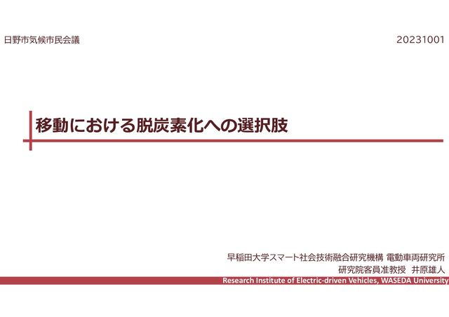 2 総排出量 10億4,400万㌧ (2020年度) その他 1億5,500万㌧ (14.9%) 産業部門 3億5,600万㌧ (34.0%) 家庭部門 1億6,600万㌧ (15.9%) 業務その他部門 1億8,200万㌧ (17.4%) 運輸部門 (自動車、船舶等) 1億8,500万㌧ (17.7%) 自家用乗用車 8,440万㌧ (45.7%) 営業用貨物車 4,039万㌧ (21.9%) 自家用貨物車 3,210万㌧ (17.4%) 自動車全体 運輸部門の87.6% 日本全体の15.5% バス 294万㌧ (1.6%) タクシー 126万㌧ (0.7%) 二輪車 75万㌧ (0.4%) 航空 524万㌧ (2.8%) 内航海運 986万㌧ (5.3%) 鉄道 784万㌧ (4.2%) 自動車以外 国土交通省,運輸部門における二酸化炭素排出量,https://www.mlit.go.jp/sogoseisaku/environment/sosei_environment_tk_000007.html 旅客自動車(ヒトを運ぶ) 運輸部門の48.4% 日本全体の8.6% 貨物自動車(モノを運ぶ) 運輸部門の39.2% 日本全体の6.9%