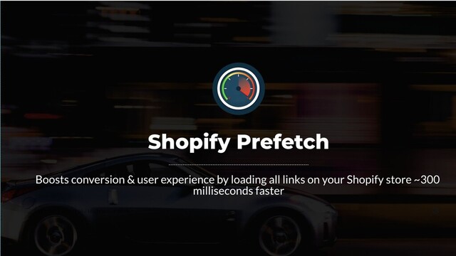 Turbocharge your Shopify App with Prefetch from Stackedboost. This application lower your latency with 300 milliseconds. According to Amazon every 100 millisecond in lowered latency will affect total sales with 1%.