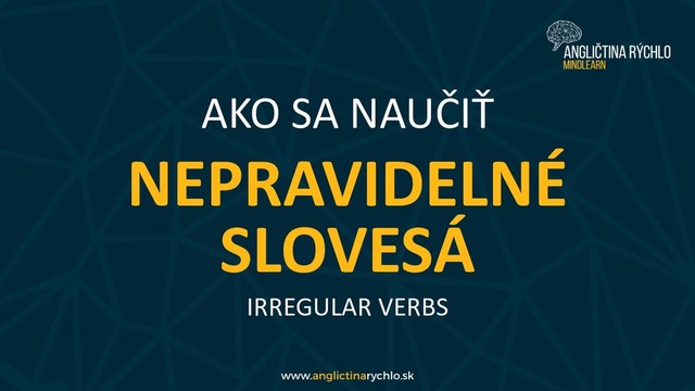 článok Nepravidelné slovesá v angličtine (irregular verbs), kde sa nachádza tabuľka s najčastejšie používanými nepravidelnými slovesami, ďalšie techniky a množstvo príkladov a viet (celý článok sa dá stiahnuť aj ako PDF zdarma).