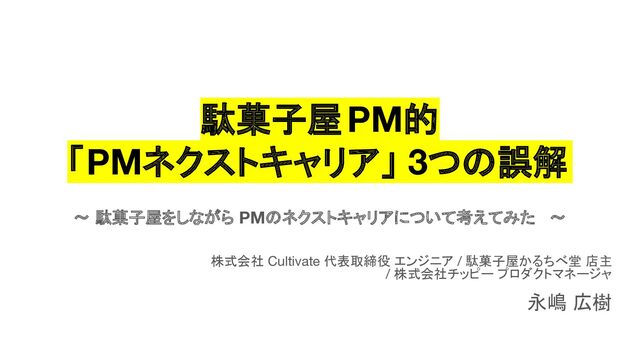 駄菓子屋PM的 「PMネクストキャリア」 3つの誤解 〜 駄菓子屋をしながら PMのネクストキャリアについて考えてみた 〜 株式会社 Cultivate 代表取締役