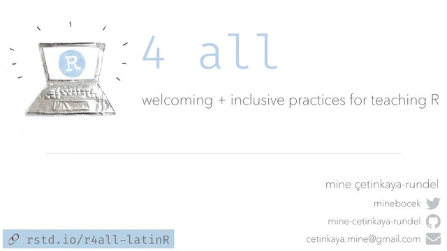 With rising interest in data science and programming, those of us teaching (with) R can now reach a larger audience than we ever thought possible. As educators, it is our responsibility to ensure that while we are building interesting and challenging curricula for these students, we also do it in a way that is attractive and engaging for a diverse audience as well as supportive enough to minimize the number of students who fall through the cracks. Adopting welcoming and inclusive practices can enable these students, whatever their background and circumstances, to achieve their potential and grow and engage with the larger R and data science community. In this talk we highlight a collection of pedagogical considerations, tips, and tricks for designing a welcoming and inclusive curriculum for teaching (with) R. In addition, we demonstrate tooling and infrastructure solutions for making it as straightforward and painless as possible to put these approaches into practice in the classroom.