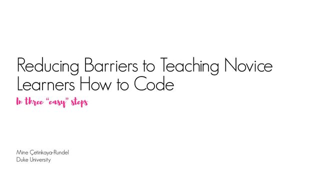 Mine Çetinkaya-Rundel Duke University Reducing Barriers to Teaching Novice Learners