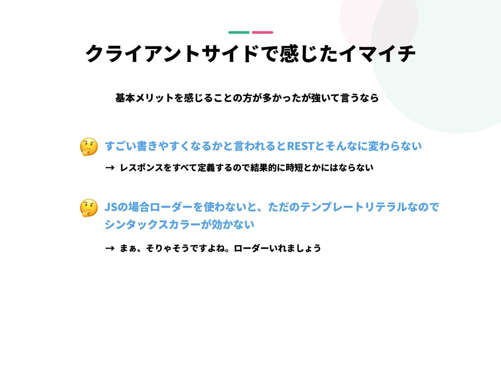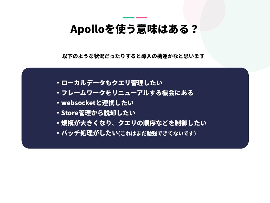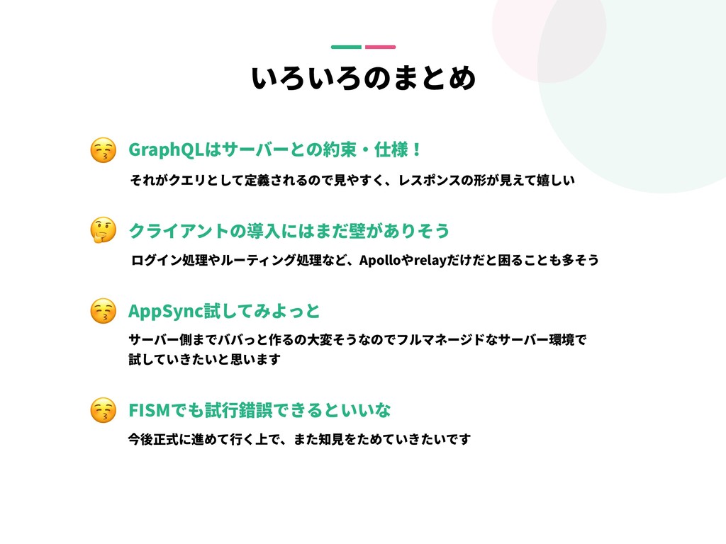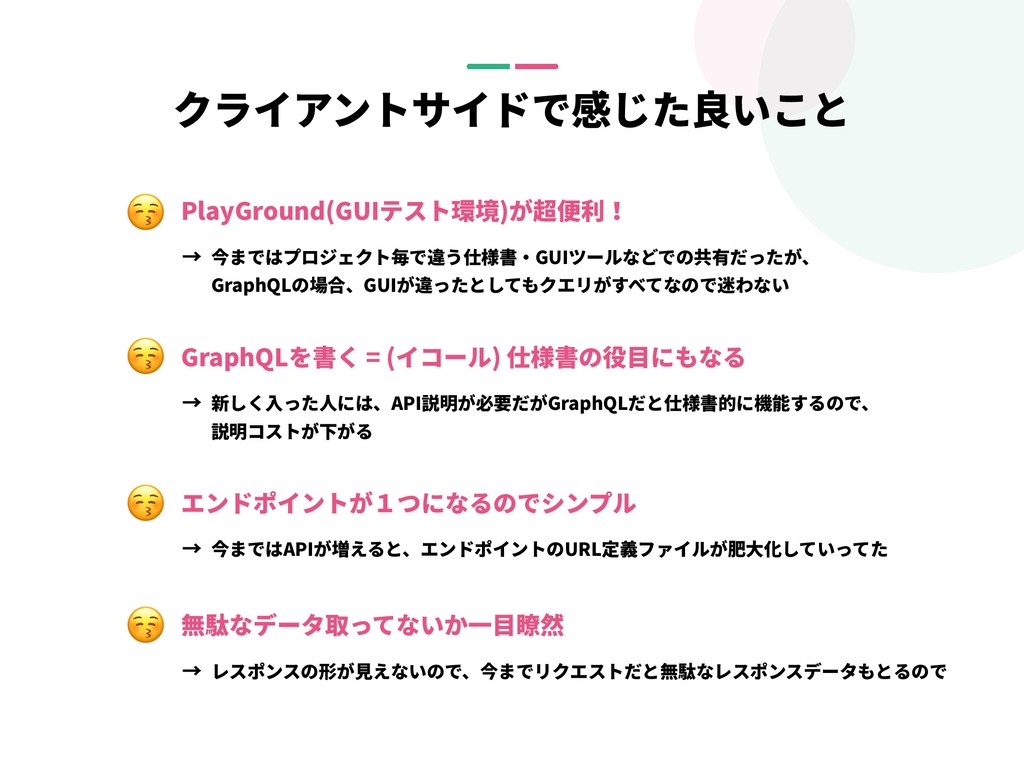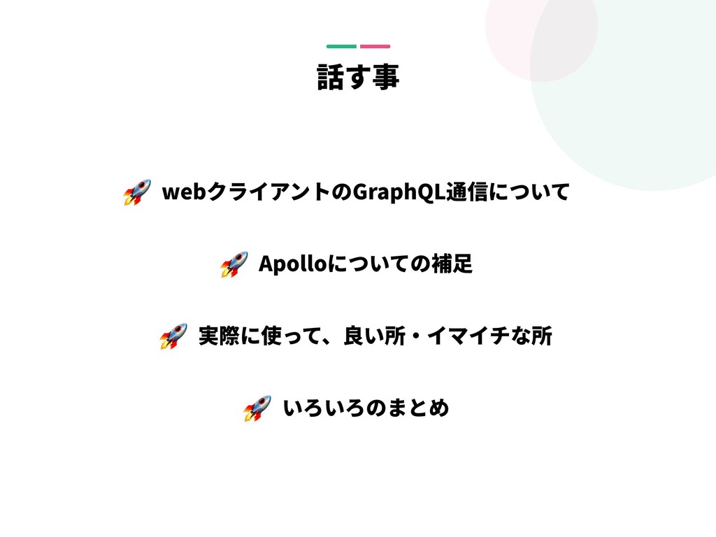 2019/5/9のGraphQL勉強会で登壇した、スライドです。 ※一部イベントの内容からスライドを変更しています