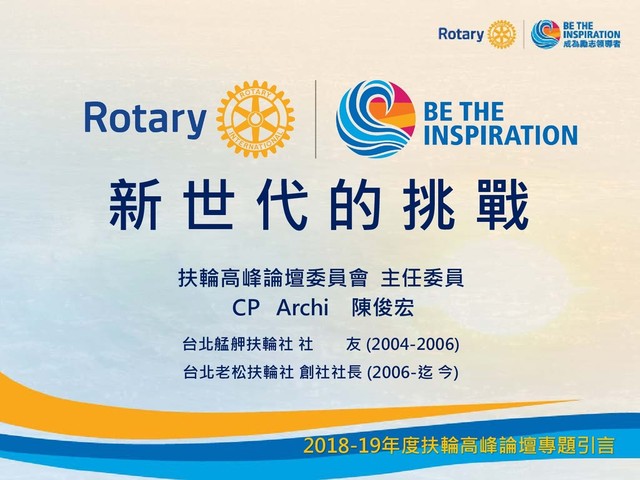 2018-19年度扶輪高峰論壇專題引言 開展無遠弗屆 的格局與氣度!