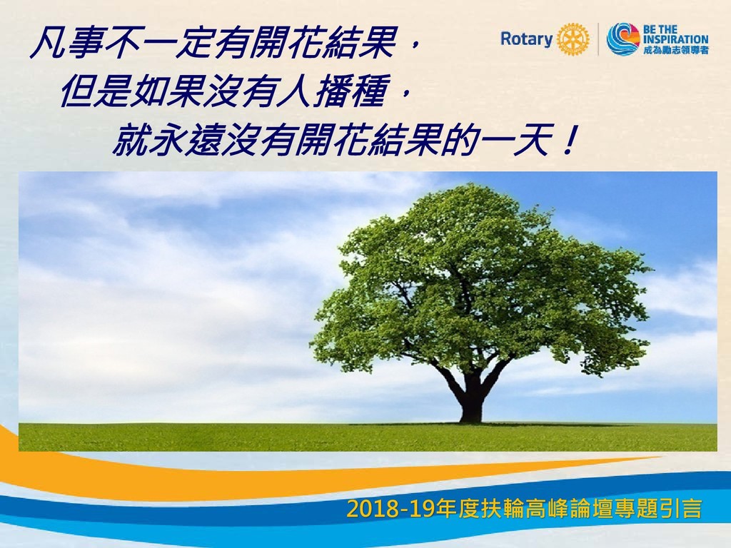 凡事不一定有開花結果, 但是如果沒有人播種, 就永遠沒有開花結果的一天! 2018-19年度扶輪高峰論壇專題引言