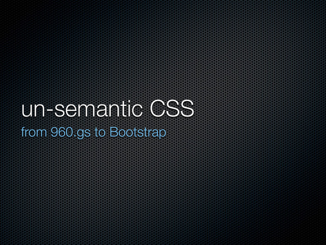 specification section on classes repeating the assumed “best practice” that… …authors are encouraged to use [class attribute] values that describe the nature of the content, rather than values that describe the desired presentation of the content. …there is no inherent reason to do this. In fact, it’s often a hindrance when working on large websites or applications.