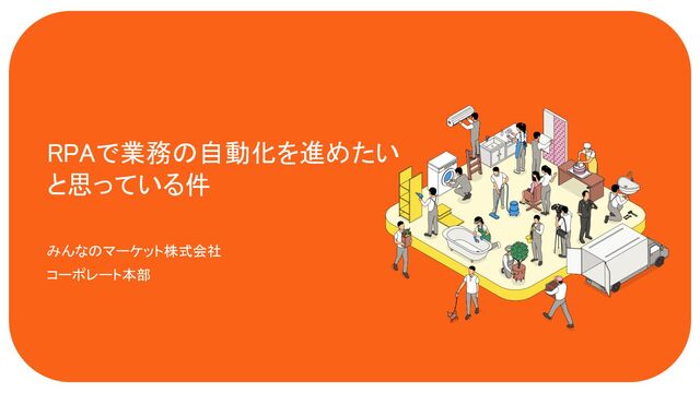 引越しや庭木の剪定などの出張・訪問サービスのプラットフォーム「くらしのマーケット」を運営する、みんなのマーケット株式会社です。 RPAで業務の自動化を進めており、今までの取り組みをご紹介します。