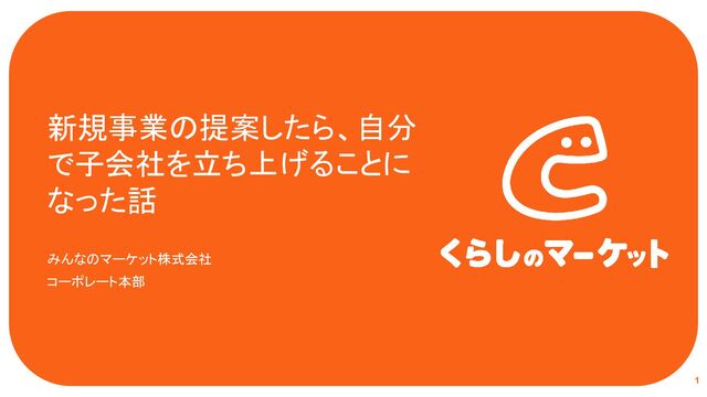 新規事業の提案したら、自分 で子会社を立ち上げることに なった話 みんなのマーケット株式会社 コーポレート本部 1