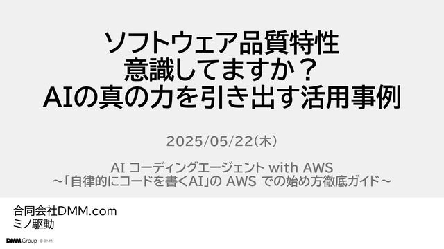 こちらのイベントの登壇資料です。 AI コーディングエージェント with AWS 〜「自律的にコードを書くAI」の AWS での始め方徹底ガイド〜 https://pages.awscloud.com/eib-aiml-250522-reg.html