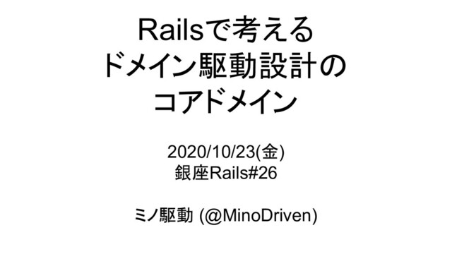 Railsで考える ドメイン駆動設計の コアドメイン 2020/10/23(金) 銀座Rails#26 ミノ駆動 (@MinoDriven)