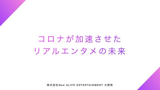 Ξϧ Τ ϯ λϝ ͷ ະ དྷ ג ࣜ ձ ࣾ N e w A L I F E E N T E R TA I N M E N T େ ؏ ࣮