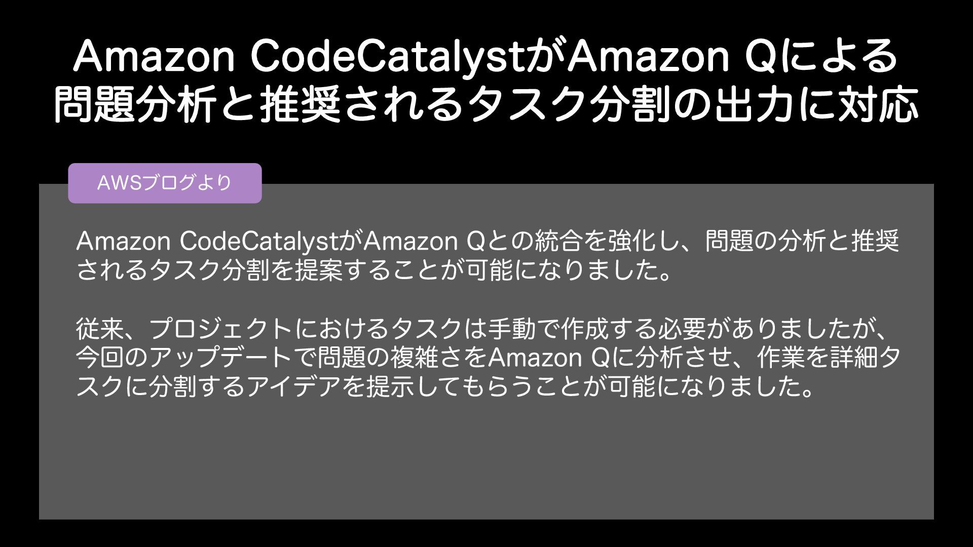"NB[PO$PEF$BUBMZTU͕"NB[PO2ʹΑΔ ੳͱਪ͞ΕΔλεΫׂͷग़ྗʹରԠ "84ϒϩάΑΓ "NB[PO$PEF$BUBMZTU͕"NB[PO2ͱͷ౷߹ΛڧԽ͠ɺͷੳͱਪ ͞ΕΔλεΫׂΛఏҊ͢Δ͜ͱ͕ՄೳʹͳΓ·ͨ͠ɻ ैདྷɺϓϩδΣΫτʹ͓͚ΔλεΫखಈͰ࡞͢Δඞཁ͕͋Γ·͕ͨ͠ɺ ࠓճͷΞοϓσʔτͰͷෳࡶ͞Λ"NB[PO2ʹੳͤ͞ɺ࡞ۀΛৄࡉλ εΫʹׂ͢ΔΞΠσΞΛఏࣔͯ͠Β͏͜ͱ͕ՄೳʹͳΓ·ͨ͠ɻ
