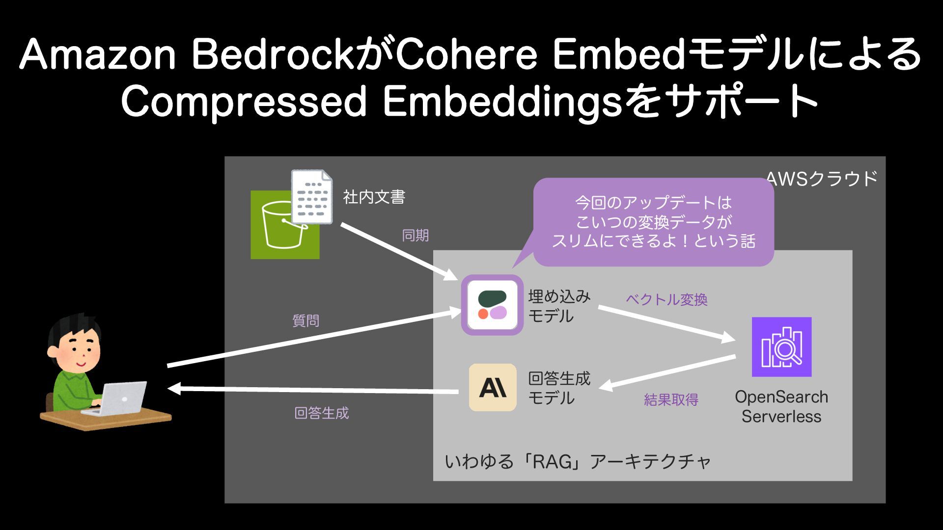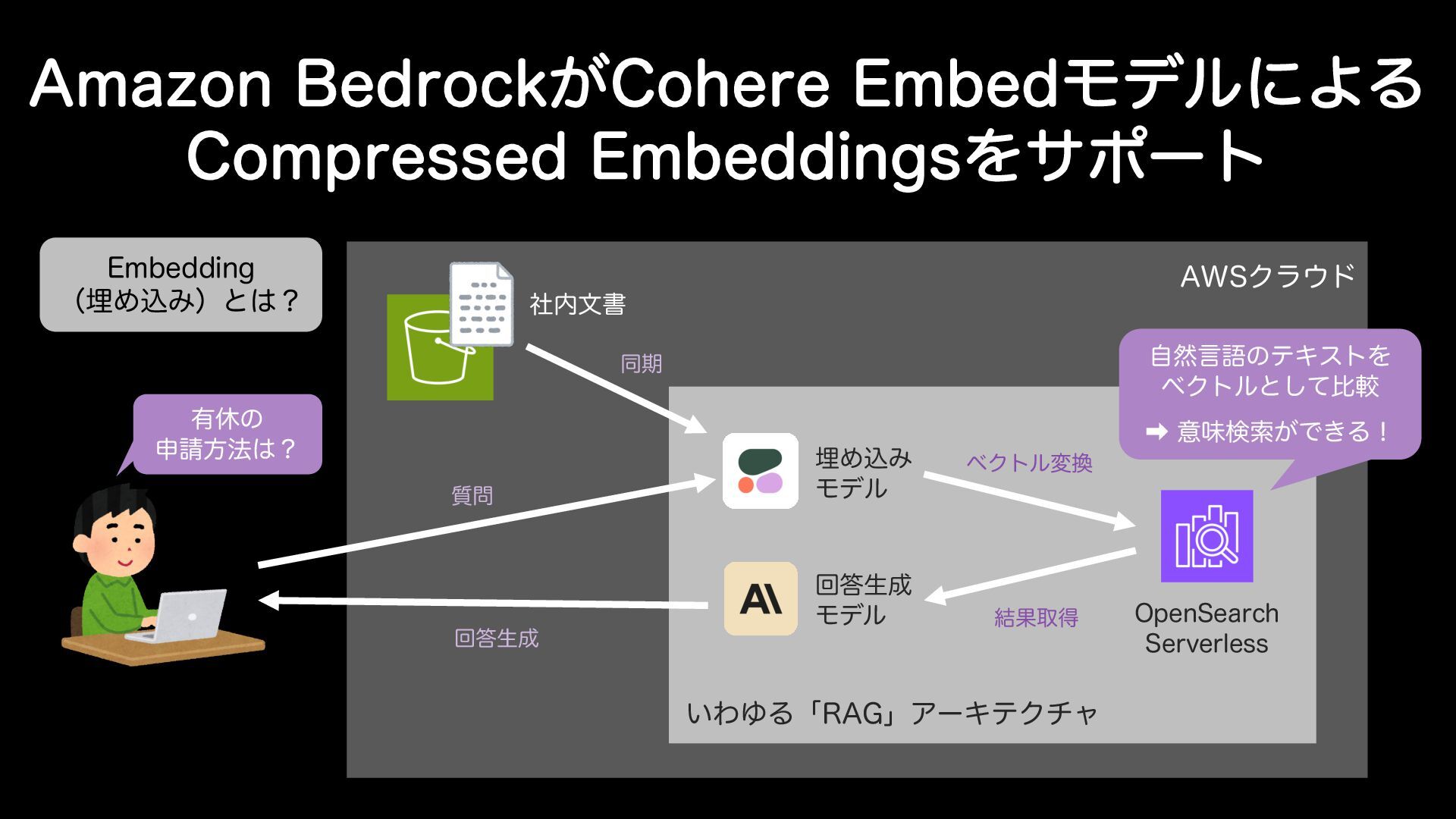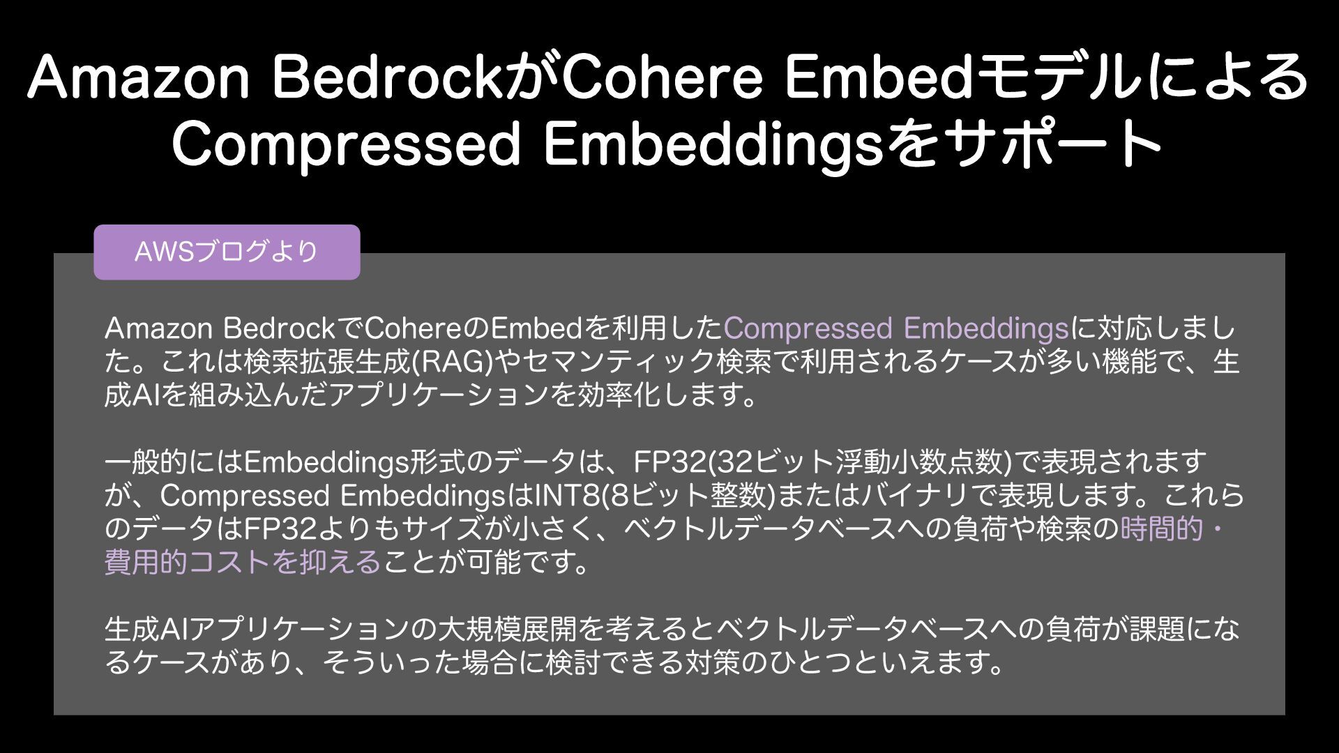 "NB[PO#FESPDL͕$PIFSF&NCFEϞσϧʹΑΔ $PNQSFTTFE&NCFEEJOHTΛαϙʔτ "84ϒϩάΑΓ "NB[PO#FESPDLͰ$PIFSFͷ&NCFEΛར༻ͨ͠$PNQSFTTFE&NCFEEJOHTʹରԠ͠·͠ ͨɻ͜Εݕࡧ֦ுੜ 3"( ηϚϯςΟοΫݕࡧͰར༻͞ΕΔέʔε͕ଟ͍ػೳͰɺੜ "*ΛΈࠐΜͩΞϓϦέʔγϣϯΛޮԽ͠·͢ɻ Ұൠతʹ&NCFEEJOHTܗࣜͷσʔλɺ'1 Ϗοτුಈখ