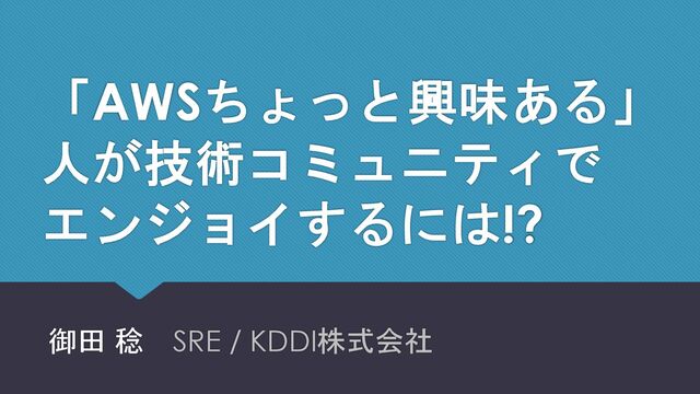 「AWSちょっと興味ある」 人が技術コミュニティで エンジョイするには!? 御田 稔 SRE / KDDI株式会社
