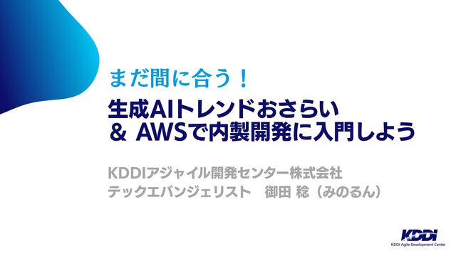 ·ͩؒʹ߹͏ʂ ੜ"*τϨϯυ͓͞Β͍ ˍ "84Ͱ։ൃʹೖ͠Α͏ ,%%*ΞδϟΠϧ։ൃηϯλʔגࣜձࣾ ςοΫΤόϯδΣϦετ ޚా ູʢΈͷΔΜʣ