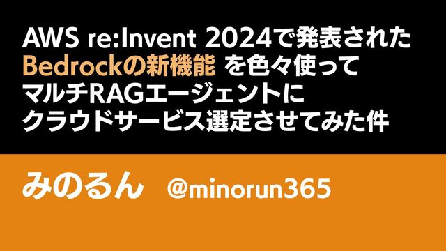 re:Inventで発表された Bedrockの新機能を色々使って、マルチRAGエージェントにクラウド選定させてみた件