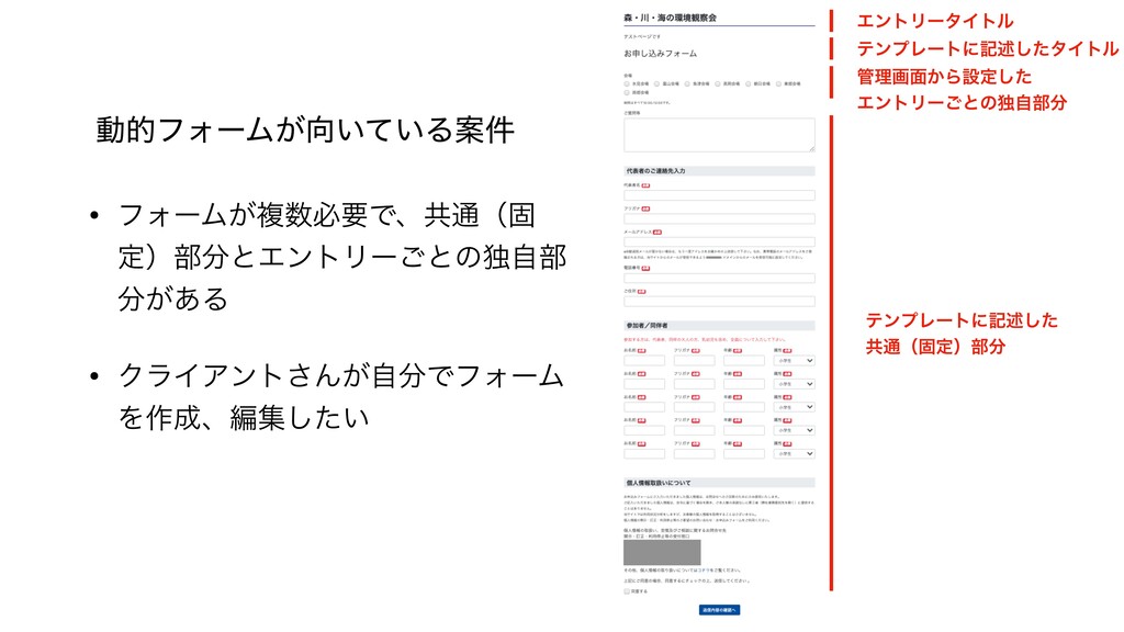 ಈతϑΥʔϜ͕͍͍ͯΔҊ݅ • ϑΥʔϜ͕ෳඞཁͰɺڞ௨ʢݻ ఆʣ෦ͱΤϯτϦʔ͝ͱͷಠࣗ෦ ͕͋Δ • ΫϥΠΞϯτ͞Μ͕ࣗͰϑΥʔϜ Λ࡞ɺฤू͍ͨ͠ ΤϯτϦʔλΠτϧ ཧը໘͔Βઃఆͨ͠
