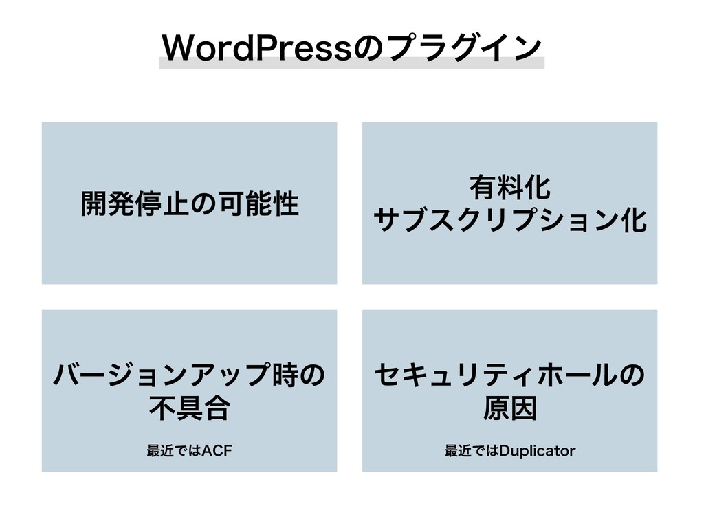 8PSE1SFTTͷϓϥάΠϯ ։ൃఀࢭͷՄೳੑ ༗ྉԽ αϒεΫϦϓγϣϯԽ όʔδϣϯΞοϓ࣌ͷ ෆ۩߹ ηΩϡϦςΟϗʔϧͷ ݪҼ ࠷ۙͰ"$' ࠷ۙͰ%VQMJDBUPS