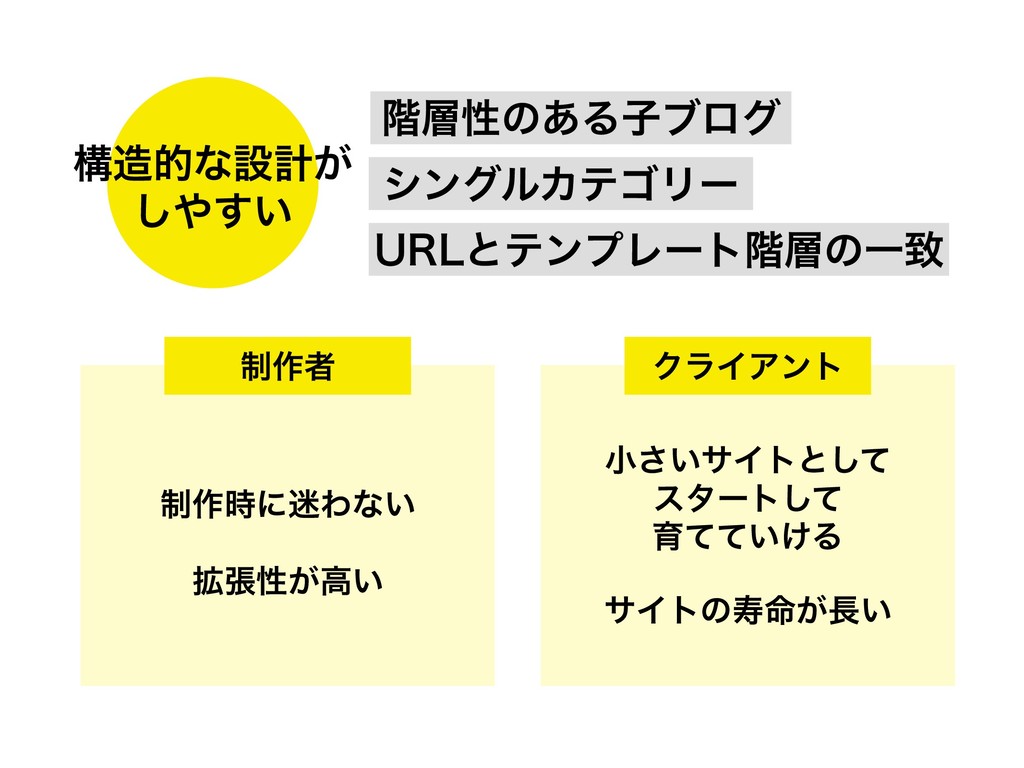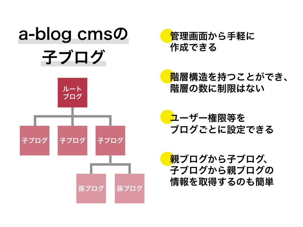 BCMPHDNTͷ ࢠϒϩά ཧը໘͔Βखܰʹ ࡞Ͱ͖Δ ֊ߏΛ࣋ͭ͜ͱ͕Ͱ͖ɺ ֊ͷʹ੍ݶͳ͍ ϢʔβʔݖݶΛ ϒϩά͝ͱʹઃఆͰ͖Δ ϒϩά͔Βࢠϒϩάɺ ࢠϒϩά͔Βϒϩάͷ