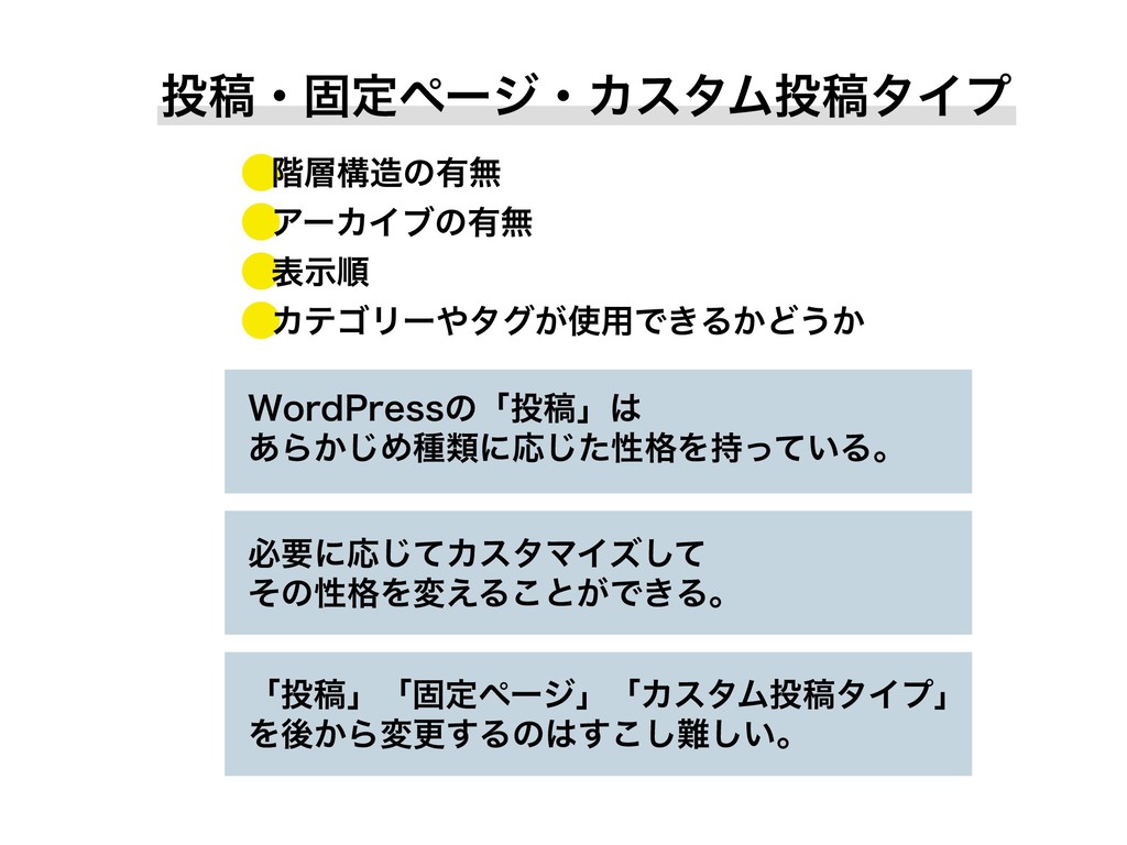 ֊ߏͷ༗ແ ΞʔΧΠϒͷ༗ແ දࣔॱ ΧςΰϦʔλά͕༻Ͱ͖Δ͔Ͳ͏͔ 8PSE1SFTTͷʮߘʯ ͋Β͔͡ΊछྨʹԠͨ͡ੑ֨Λ͍࣋ͬͯΔɻ ඞཁʹԠͯ͡ΧελϚΠζͯ͠ ͦͷੑ֨Λม͑Δ͜ͱ͕Ͱ͖Δɻ ʮߘʯʮݻఆϖʔδʯʮΧελϜߘλΠϓʯ Λޙ͔Βมߋ͢Δͷ͍͢͜͠͠ɻ