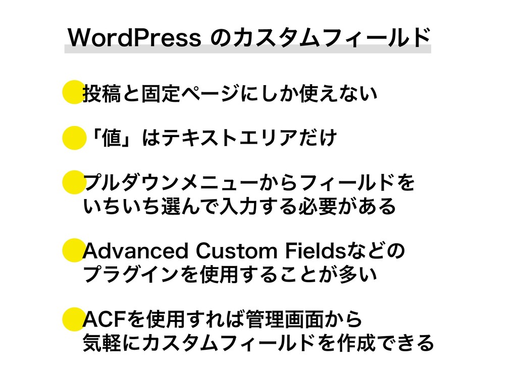 8PSE1SFTTͷΧελϜϑΟʔϧυ ߘͱݻఆϖʔδʹ͔͑͠ͳ͍ ʮʯςΩετΤϦΞ͚ͩ ϓϧμϯϝχϡʔ͔ΒϑΟʔϧυΛ ͍͍ͪͪબΜͰೖྗ͢Δඞཁ͕͋Δ "EWBODFE$VTUPN'JFMETͳͲͷ ϓϥάΠϯΛ༻͢Δ͜ͱ͕ଟ͍ "$'Λ༻͢Εཧը໘͔Β ؾܰʹΧελϜϑΟʔϧυΛ࡞Ͱ͖Δ