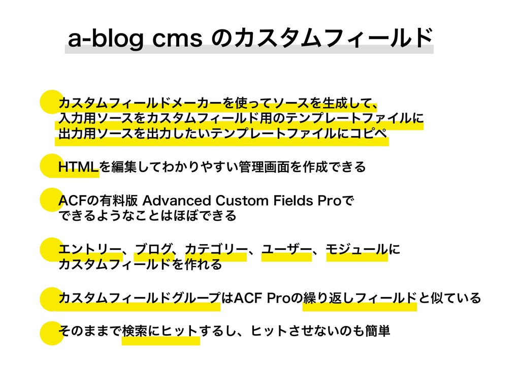 BCMPHDNTͷΧελϜϑΟʔϧυ ΧελϜϑΟʔϧυϝʔΧʔΛͬͯιʔεΛੜͯ͠ɺ ೖྗ༻ιʔεΛΧελϜϑΟʔϧυ༻ͷςϯϓϨʔτϑΝΠϧʹ ग़ྗ༻ιʔεΛग़ྗ͍ͨ͠ςϯϓϨʔτϑΝΠϧʹίϐϖ )5.-Λฤूͯ͠Θ͔Γ͍͢ཧը໘Λ࡞Ͱ͖Δ "$'ͷ༗ྉ൛"EWBODFE$VTUPN'JFMET1SPͰ Ͱ͖ΔΑ͏ͳ͜ͱ΄΅Ͱ͖Δ ΤϯτϦʔɺϒϩάɺΧςΰϦʔɺϢʔβʔɺϞδϡʔϧʹ ΧελϜϑΟʔϧυΛ࡞ΕΔ ΧελϜϑΟʔϧυάϧʔϓ"$'1SPͷ܁Γฦ͠ϑΟʔϧυͱࣅ͍ͯΔ