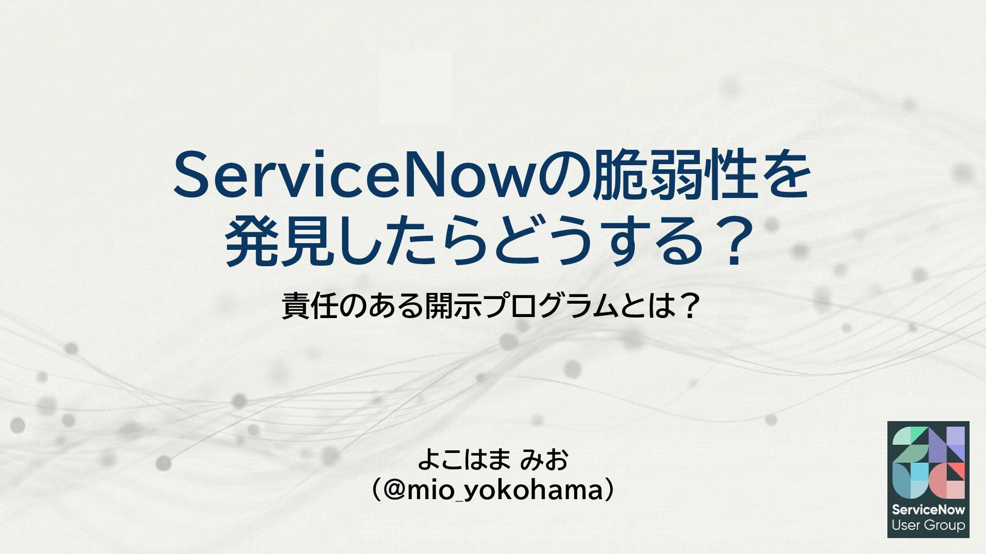 ServiceNowの脆弱性を 発見したらどうする? 責任のある開示プログラムとは? よこはま みお (@mio_yokohama)