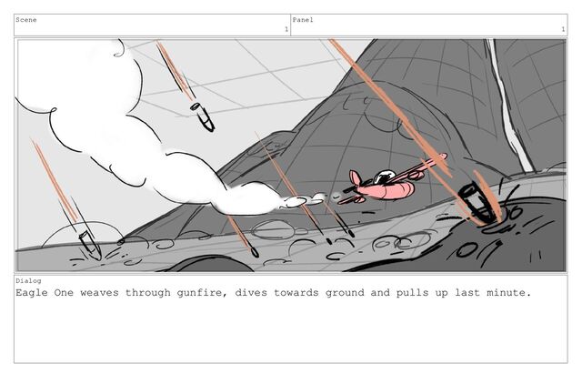 Scene 1 Panel 1 Dialog Eagle One weaves through gunfire,