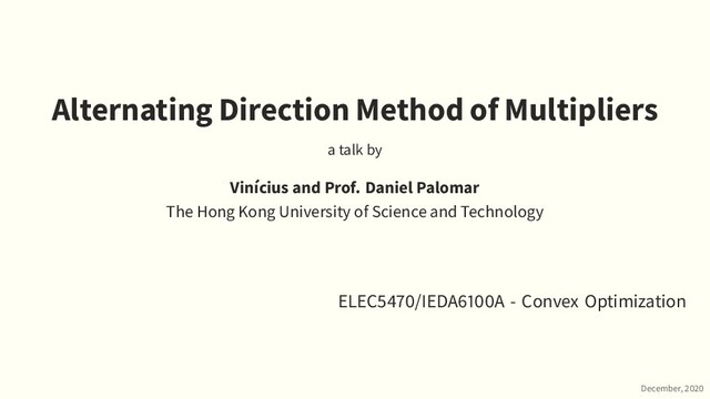 via the Alternating Direction Method of Multipliers. Foundations and Trends in Machine Learning. 2010. available online for free: https://web.stanford.edu/~boyd/ papers/pdf/admm_distr_stats.pdf citations: 135191 Yuxin Chen’s Princeton lecture notes ELE 522: Large-Scale Optimization for Data Science 1as of Nov. 24th 2020