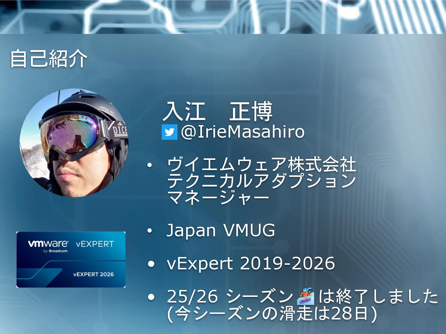 VMUG • vExpert 2019-2026 • 25/26 シーズン は終了しました (今シーズンの滑走は28日)