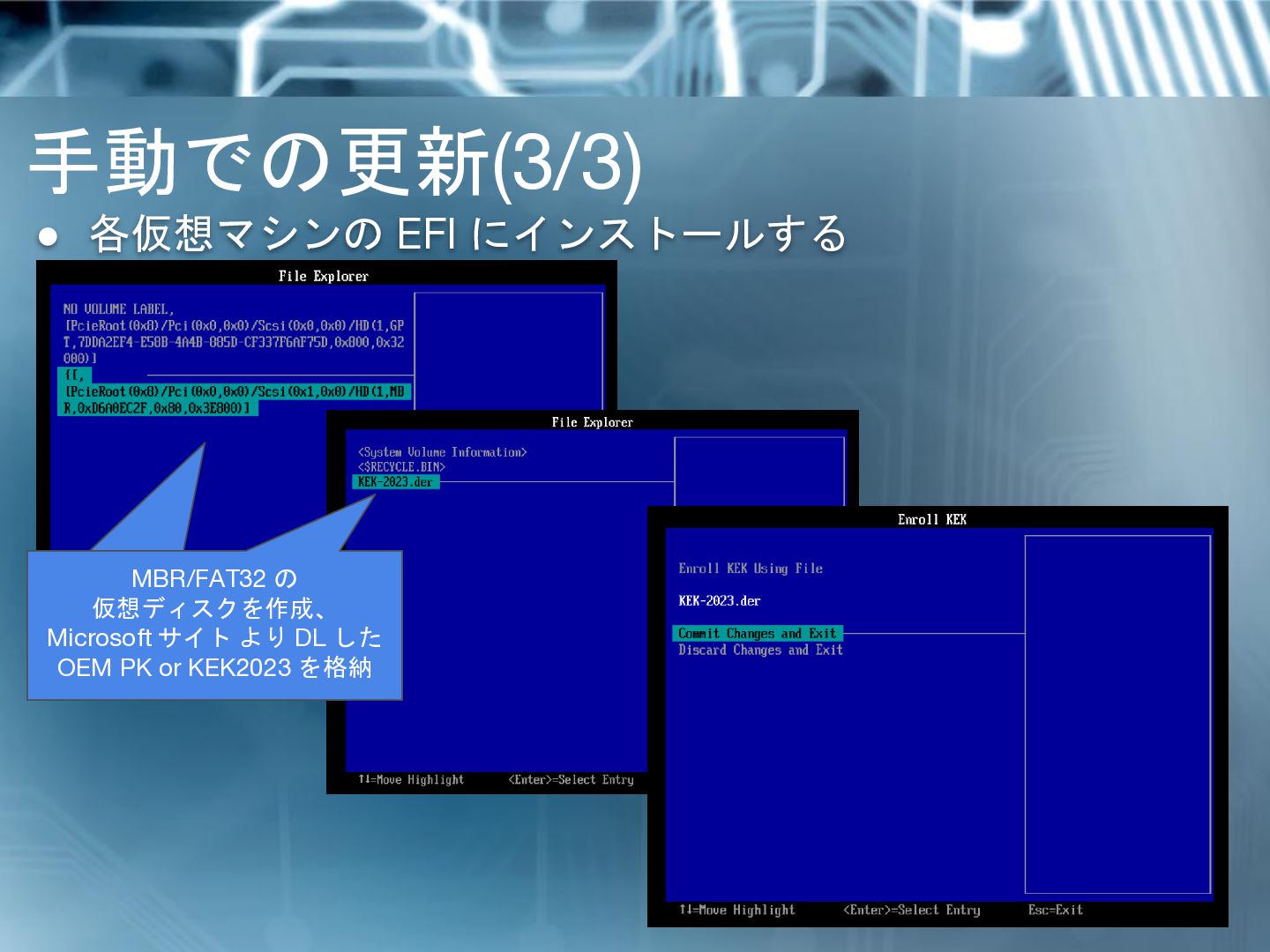 6. 仮想マシンでは KEK 更新が失敗 • DB / DBX の更新には KEK での検証が必要