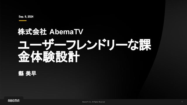 1 株式会社 AbemaTV ユーザーフレンドリーな課 金体験設計 Sep. 9, 2024 縣 美早