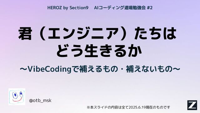 君(エンジニア)たちはどう生きるか~VibeCodingで補えるもの・補えないもの~ VibeCodingで開発してみて、この先の開発を取り巻く現場、企業、組織ってどうなっていくのかな、という点に考えを巡らせました。 楽しく生き抜いていきたいものです。