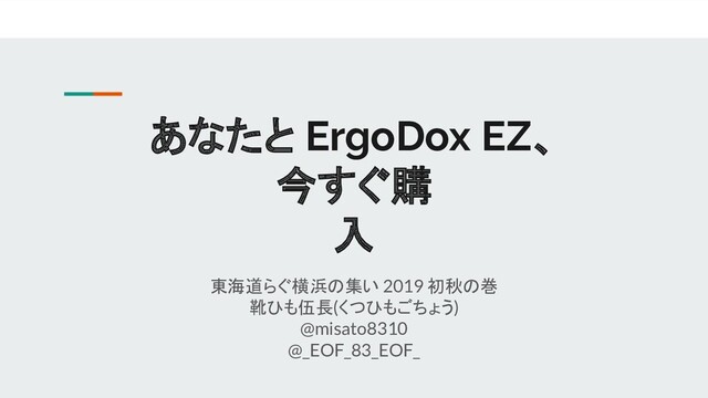 東海道らぐ横浜の集い 2019 初秋の巻 で発表したときの資料です。ErgoDox EZ を購入したお話です。
