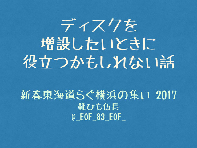 ディスクを 増設したいときに 役立つかもしれない話 新春東海道らぐ横浜の集い 2017 靴ひも伍長 @_EOF_83_EOF_