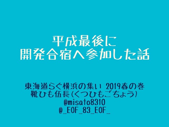 平成最後に 開発合宿へ参加した話 東海道らぐ横浜の集い 2019春の巻 靴ひも伍長(くつひもごちょう) @misato8310 @_EOF_83_EOF_