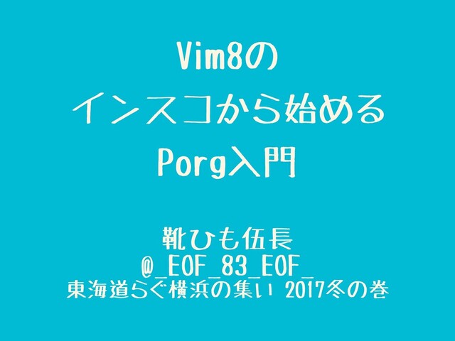 Vim8の インスコから始める Porg入門 靴ひも伍長 @_EOF_83_EOF_ 東海道らぐ横浜の集い 2017冬の巻