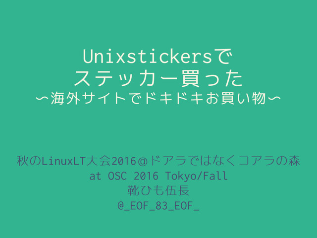 Unixstickersで ステッカー買った 〜海外サイトでドキドキお買い物〜 秋のLinuxLT大会2016@ドアラではなくコアラの森 at OSC 2016 Tokyo/Fall 靴ひも伍長 @_EOF_83_EOF_