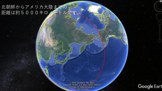 北朝鮮からアメリカ大陸までの 距離は約5000キロメートルです。