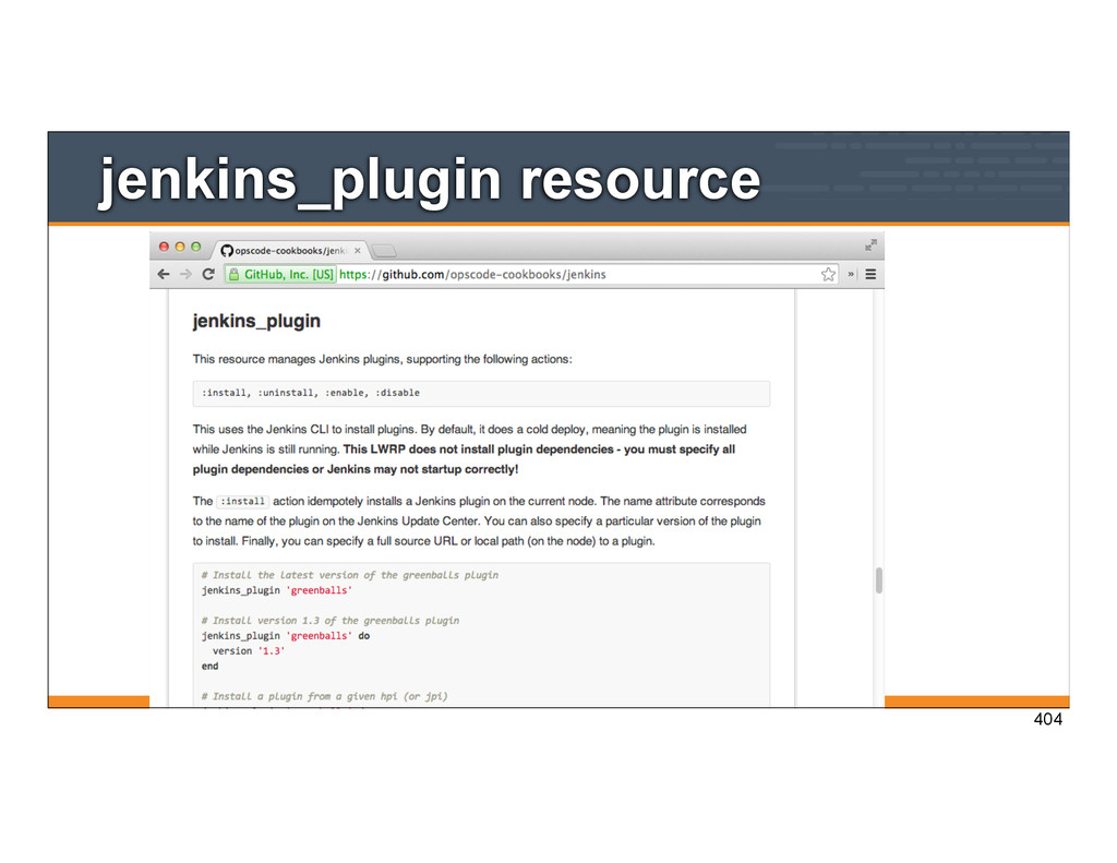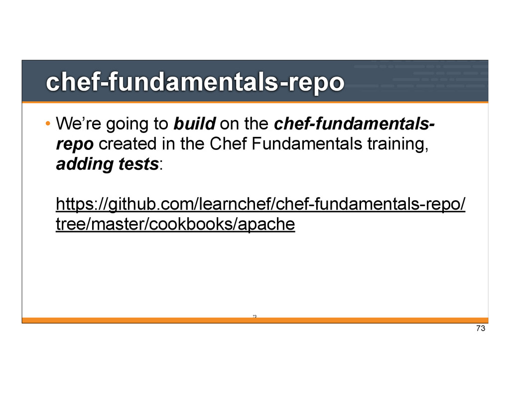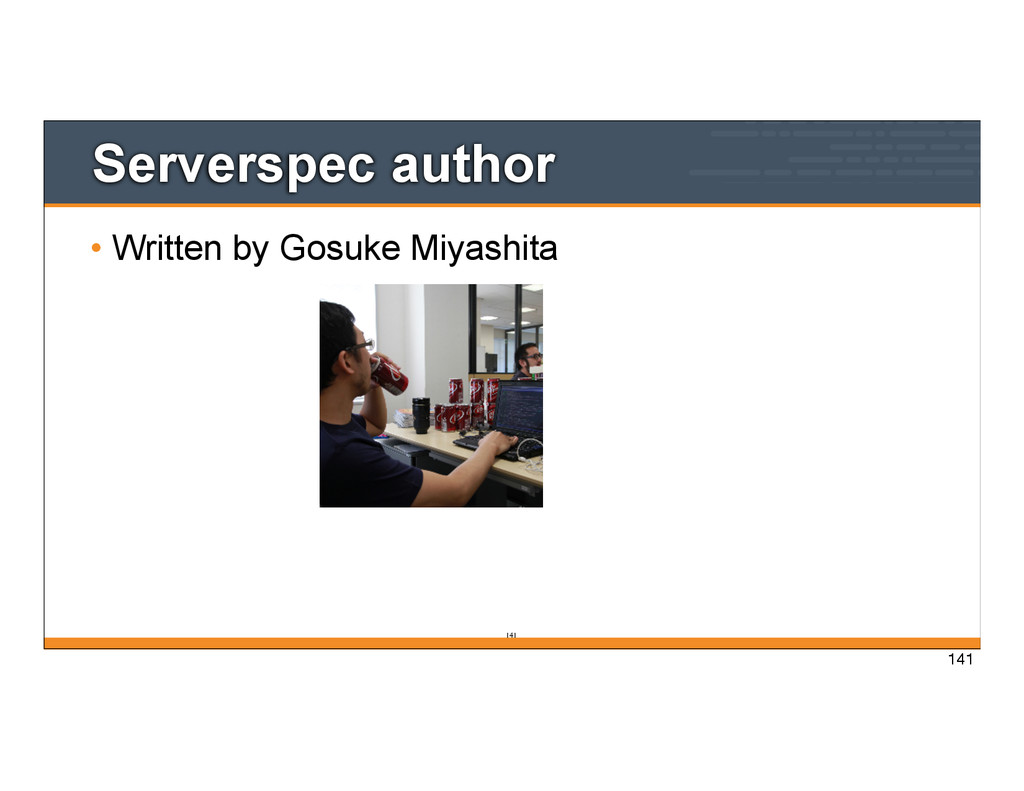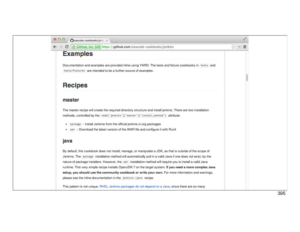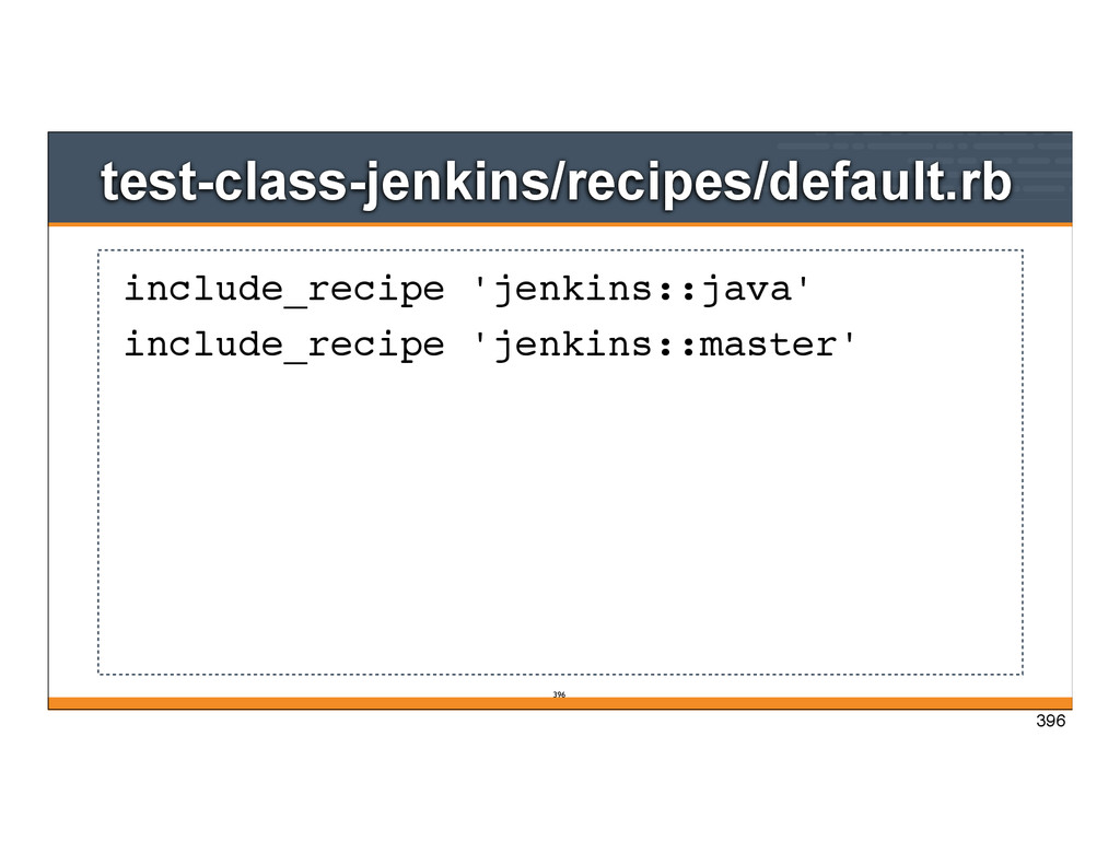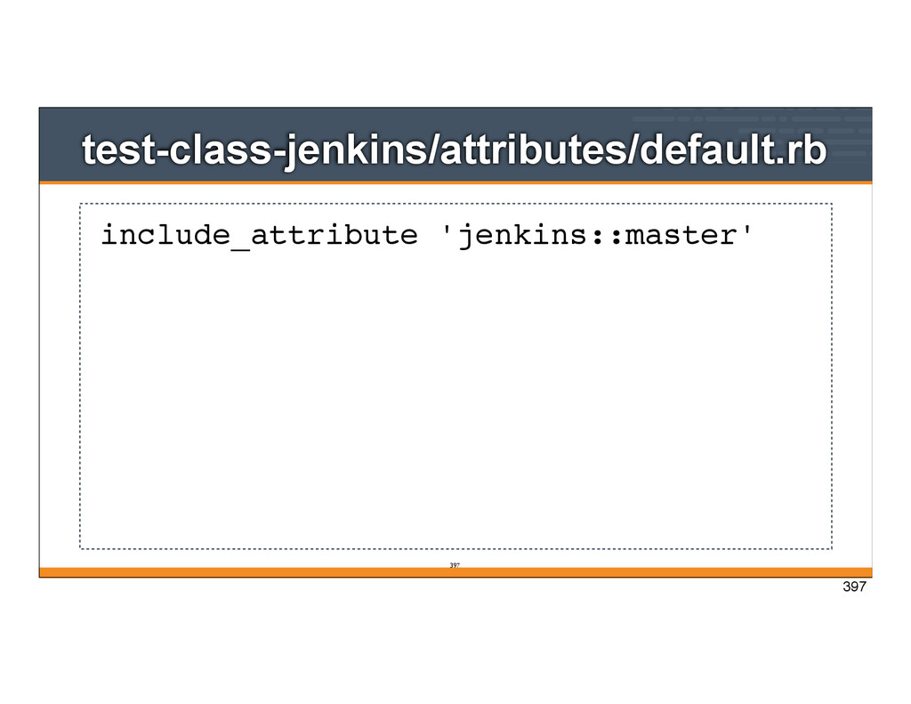 test plugin, as Test Kitchen many different kinds of test plugins. A test plugin is called a busser. We’ll be using the busser directory called serverspec. └── test/ └── integration/ └── default/ └── serverspec/ 170