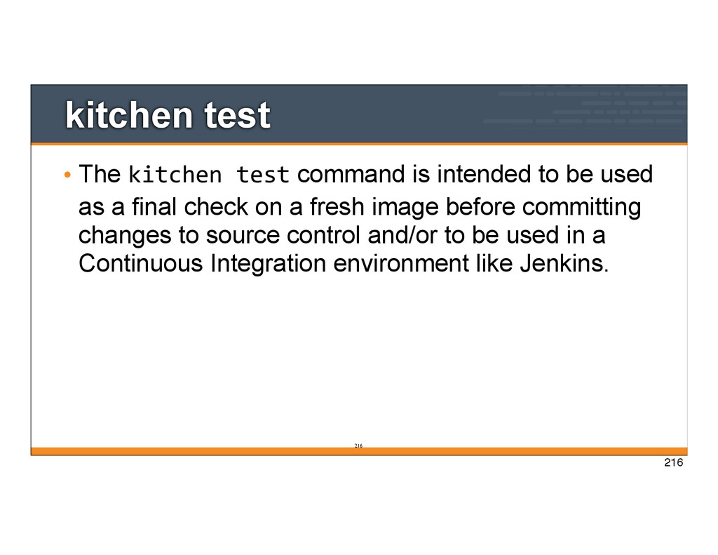 to be used as a final check on a fresh image before committing changes to source control and/or to be used in a Continuous Integration environment like Jenkins. 216