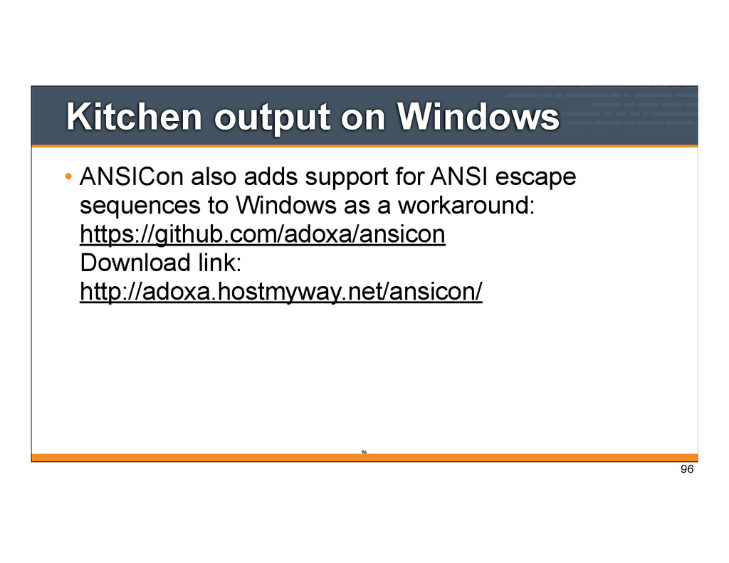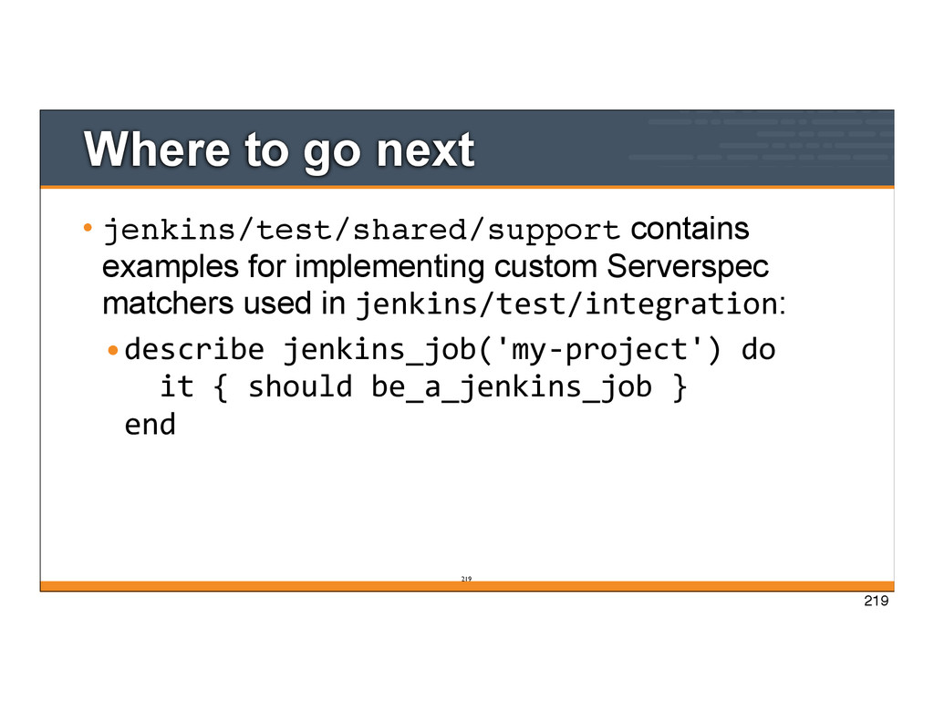 to share test data between serverspec suites • Directory specified in data/path is copied to /tmp/ kitchen/data on guest • Reason for weird require_relative directive in tests that use custom Serverspec matchers: require_relative '../../../kitchen/data/ spec_helper' 221 221