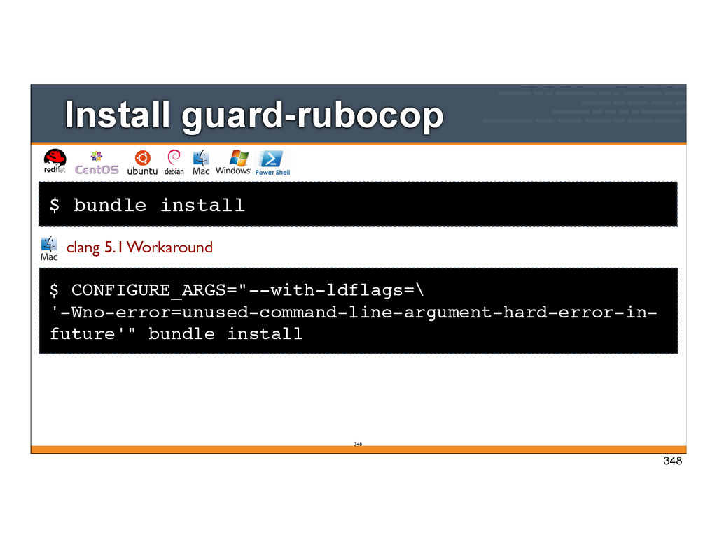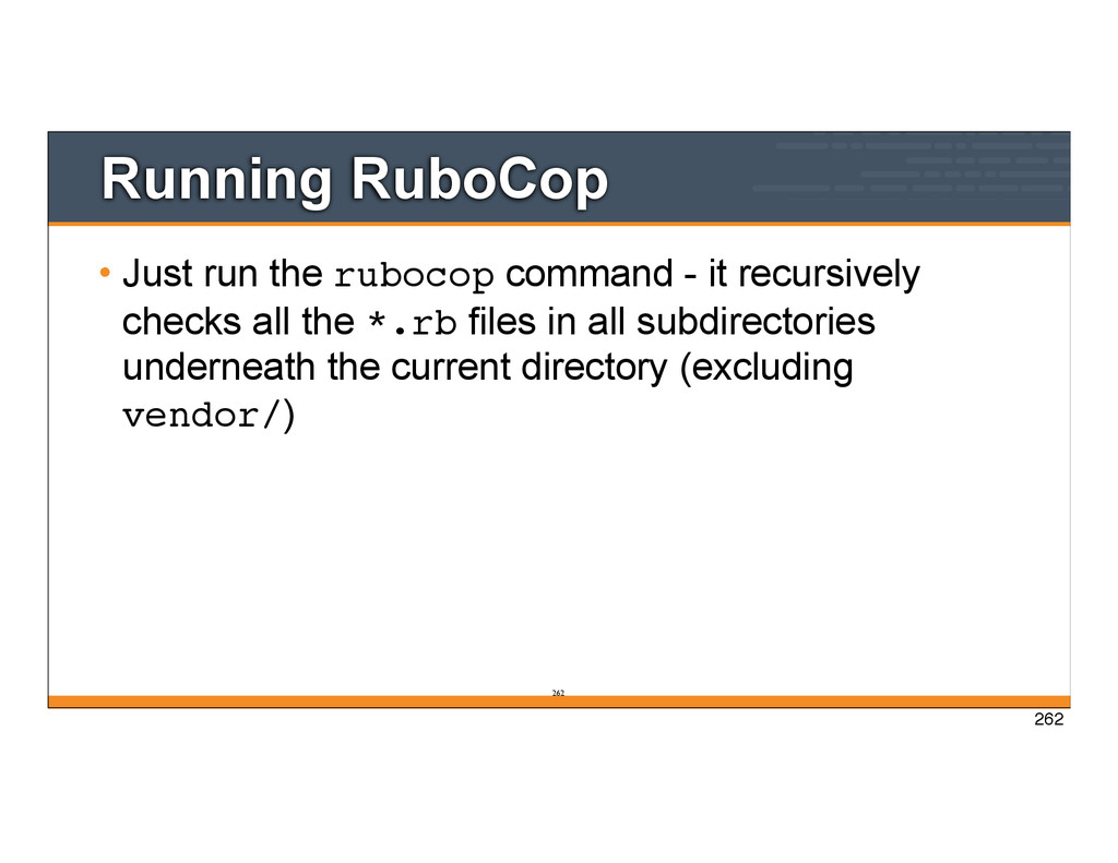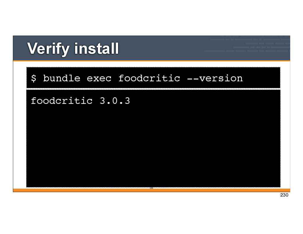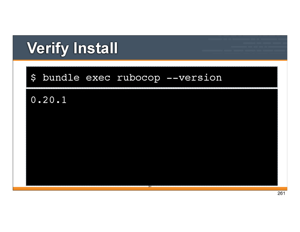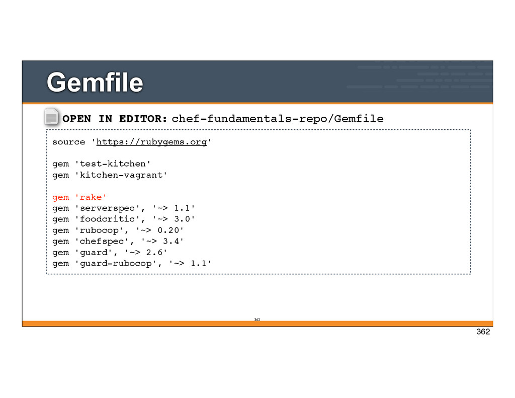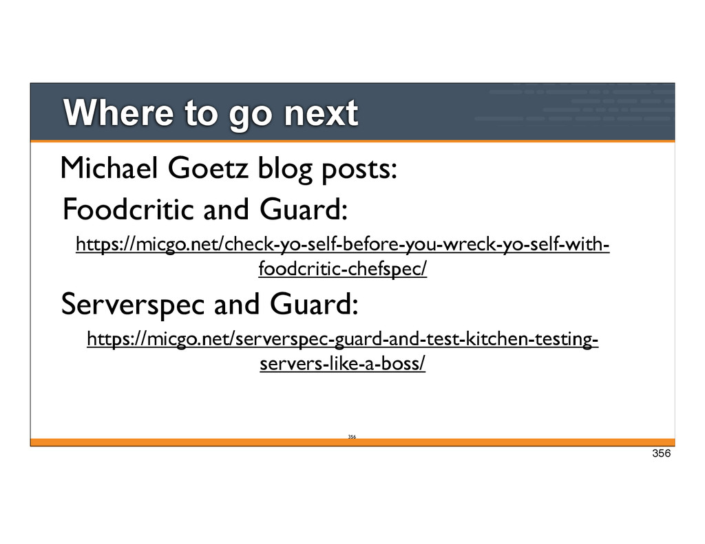 to Ruby would like some guidance on how to write idiomatic Ruby • Get the same kind of feedback for Ruby using RuboCop that you get for Chef Code using Foodcritic (Chef code is Ruby) 255 255
