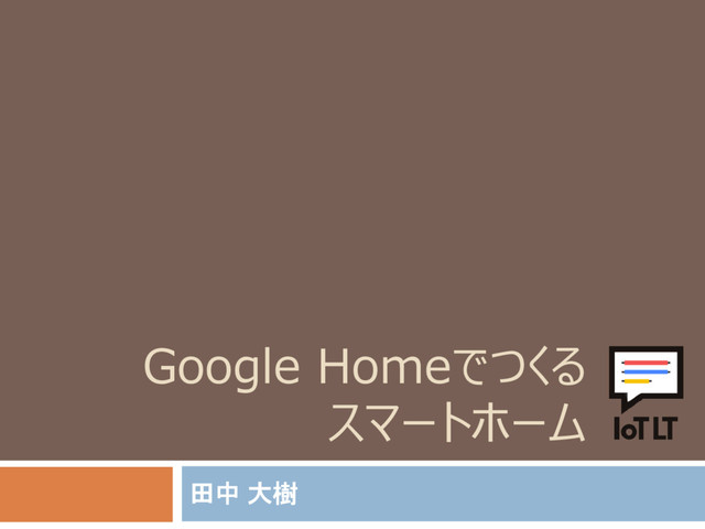 IoTLT vol.35@リレーションズにて行ったLT資料です。 Google Homeを使ったスマートホームの構成を簡単に説明します。
