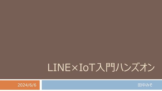 2024/6/6に開催された「LINE x IoT 入門ハンズオン」のスライドです。