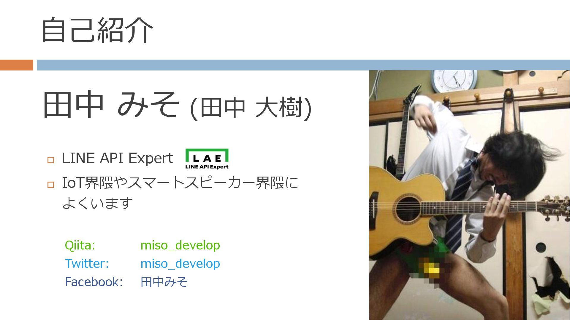 田中みそ LINE API Expert IoT界隈やスマートスピーカー界隈に よくいます