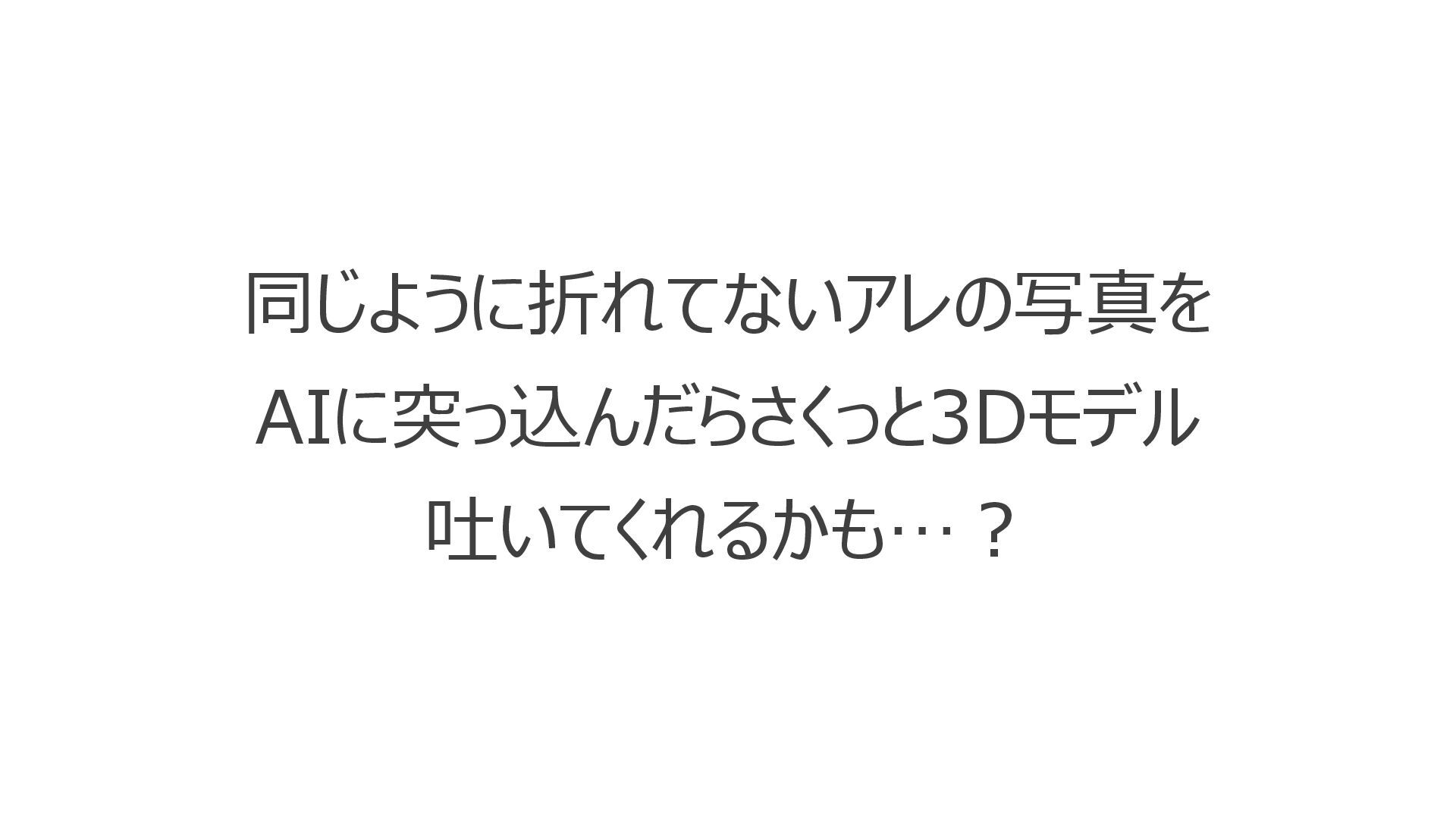 同じように折れてないアレの写真を AIに突っ込んだらさくっと3Dモデル 吐いてくれるかも…?