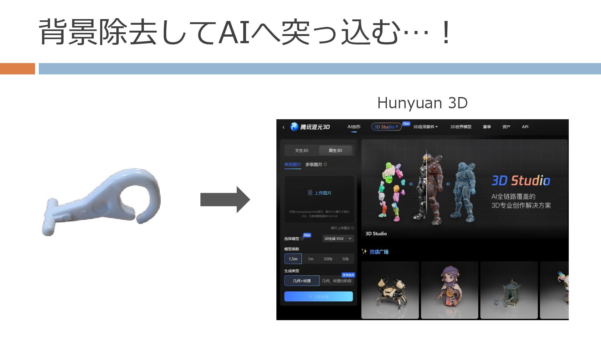 背景除去してAIへ突っ込む…! Hunyuan 3D https://3d.hunyuan.tencent.com/